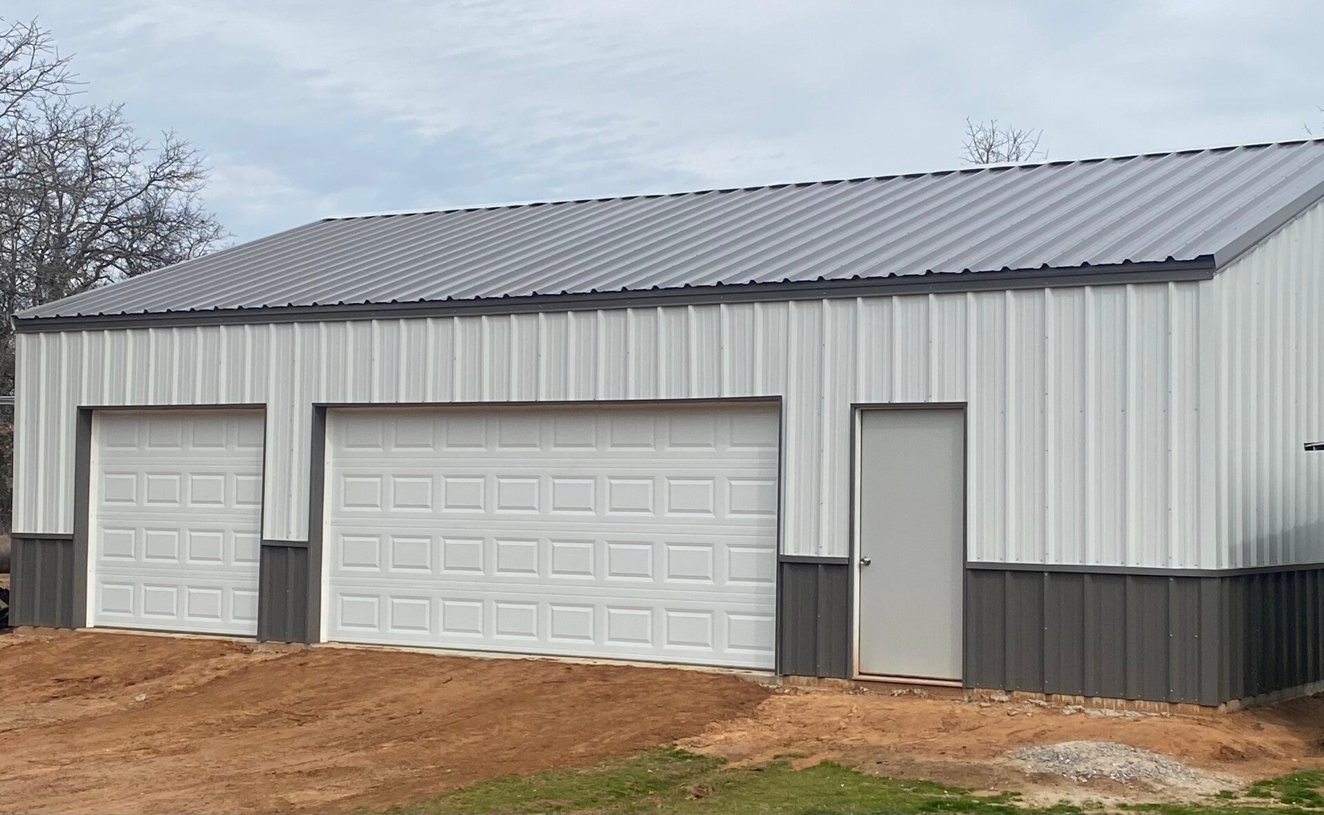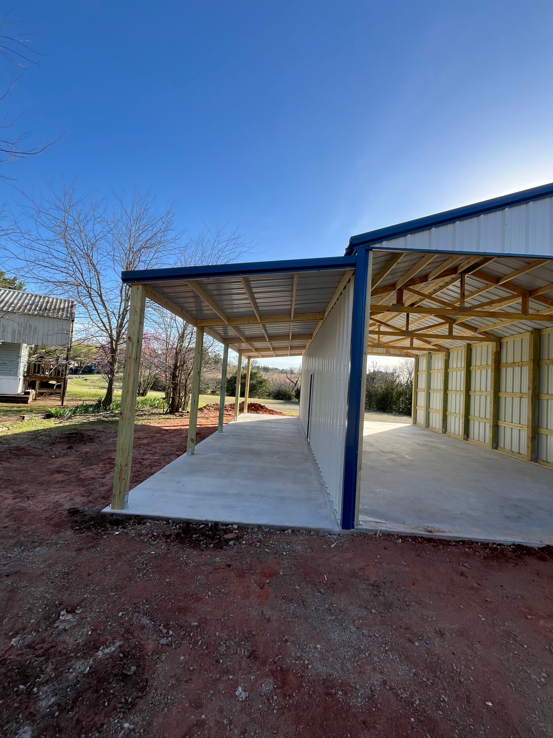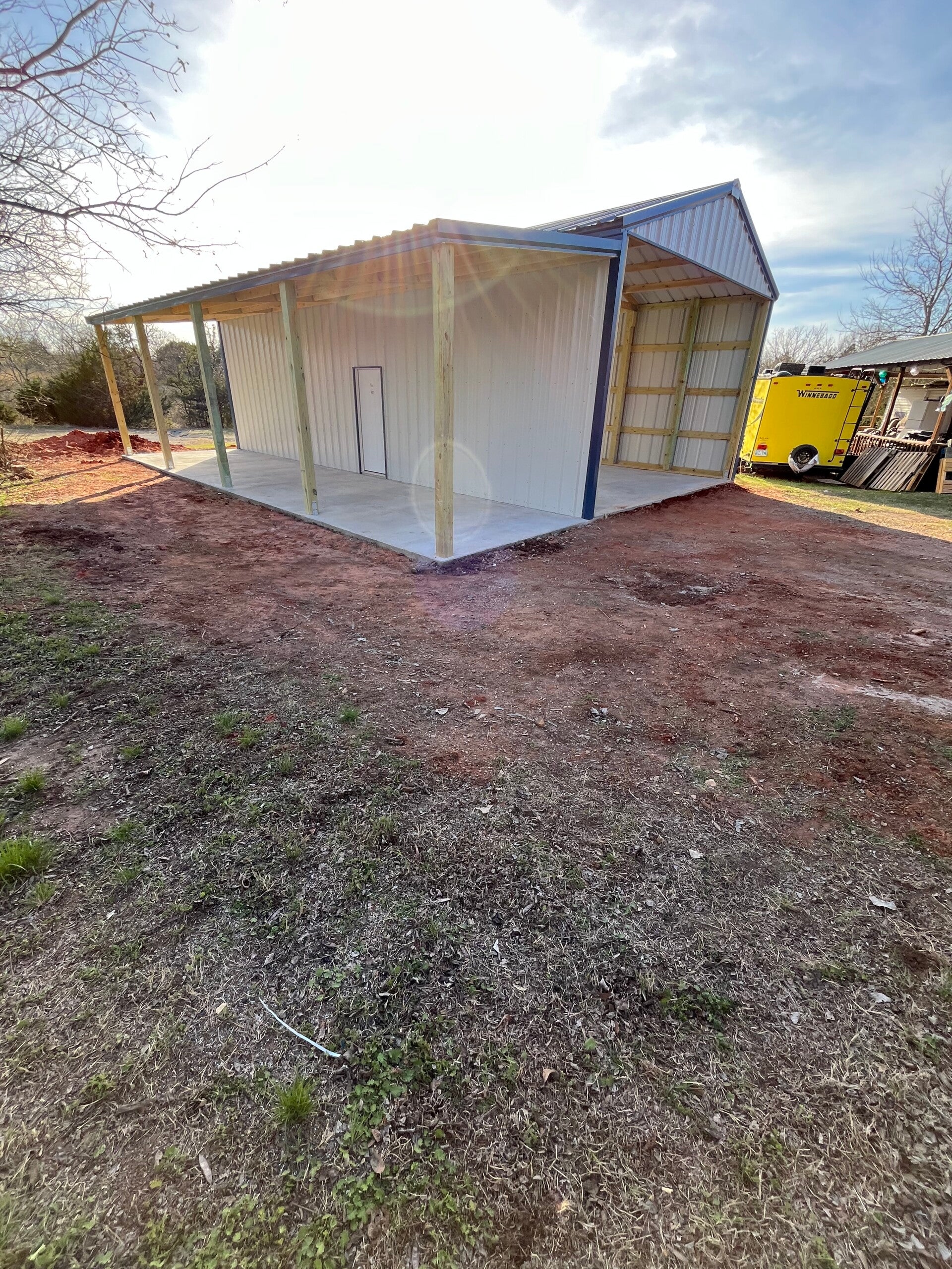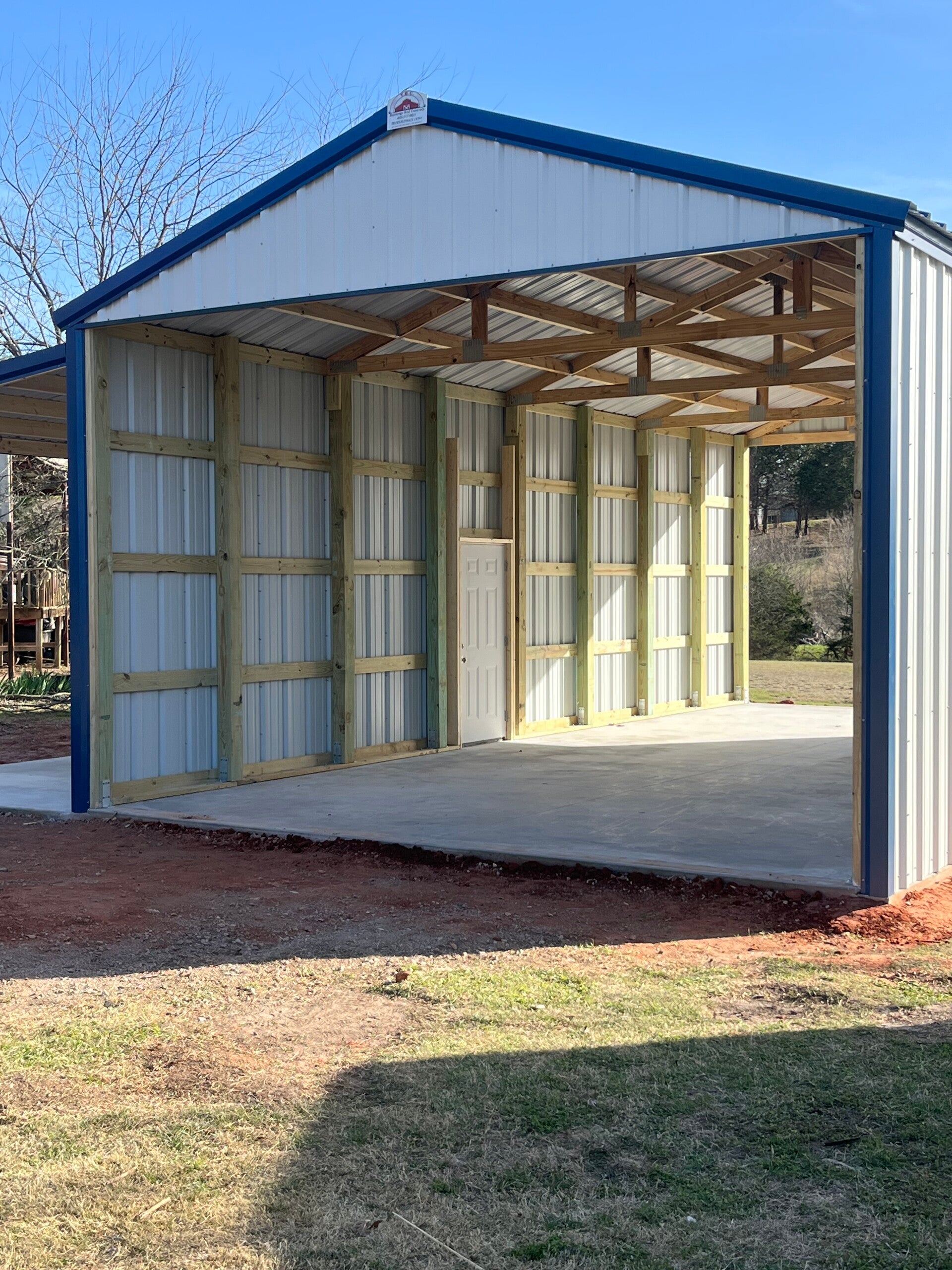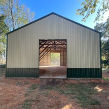 25x30x12 with upgraded color matching screws and a 20x25 gable extension with an enclosed truss and 2ft sheet metal on the sides