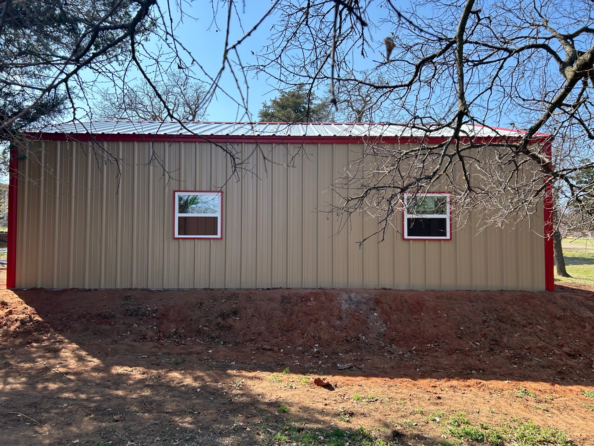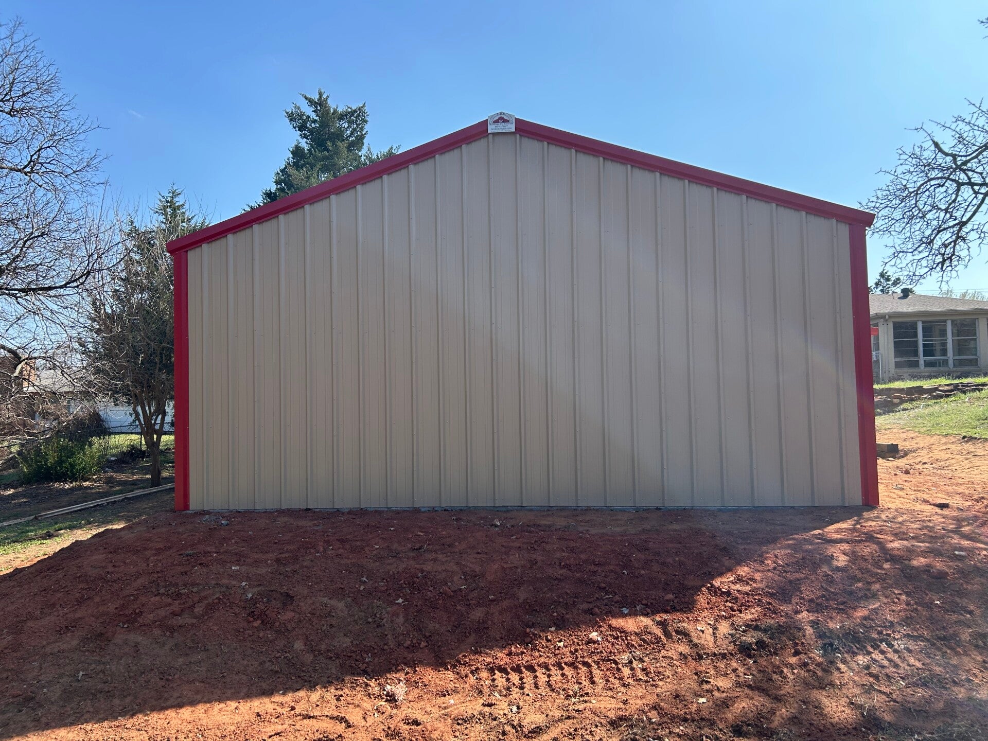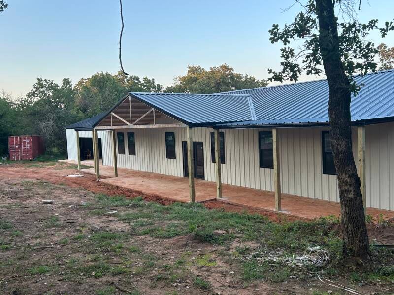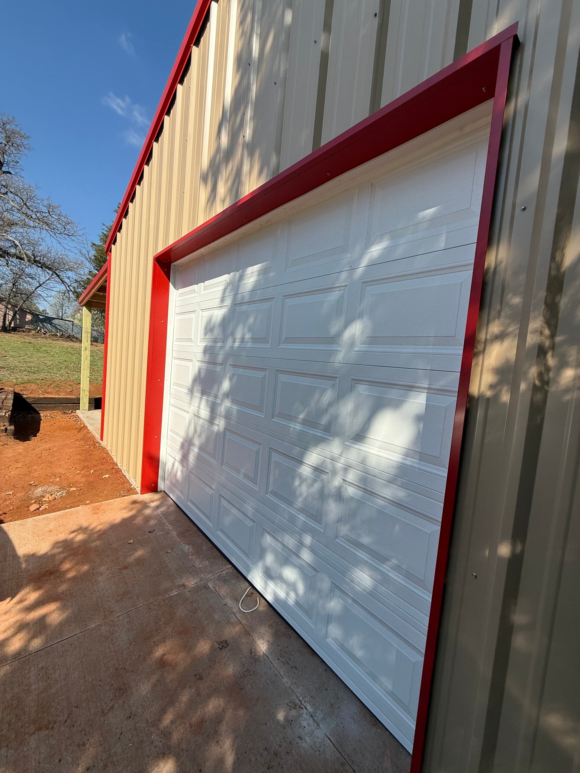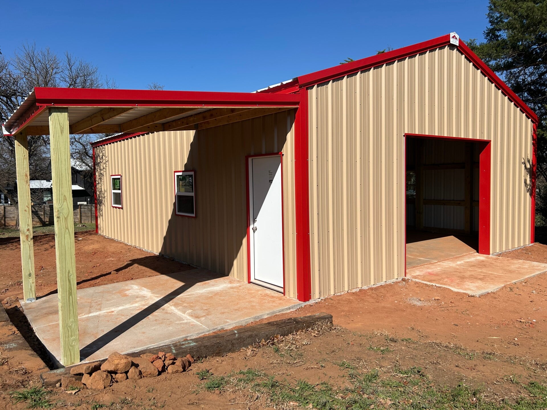25x30x12 with upgraded color matching screws and a 20x25 gable extension with an enclosed truss and 2ft sheet metal on the sides